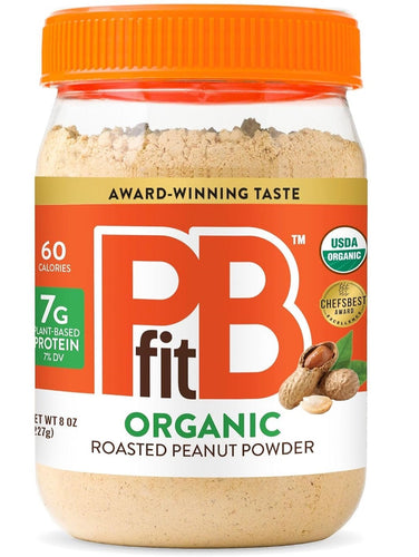 Mantequilla de maní orgánica en polvo PBfit de 226 g, pasta de maní en polvo hecha con maní tostado prensado real, 7 g de proteína (7 % VD), sin gluten, 60 calorías, 87 % menos de grasa (paquete de 1)