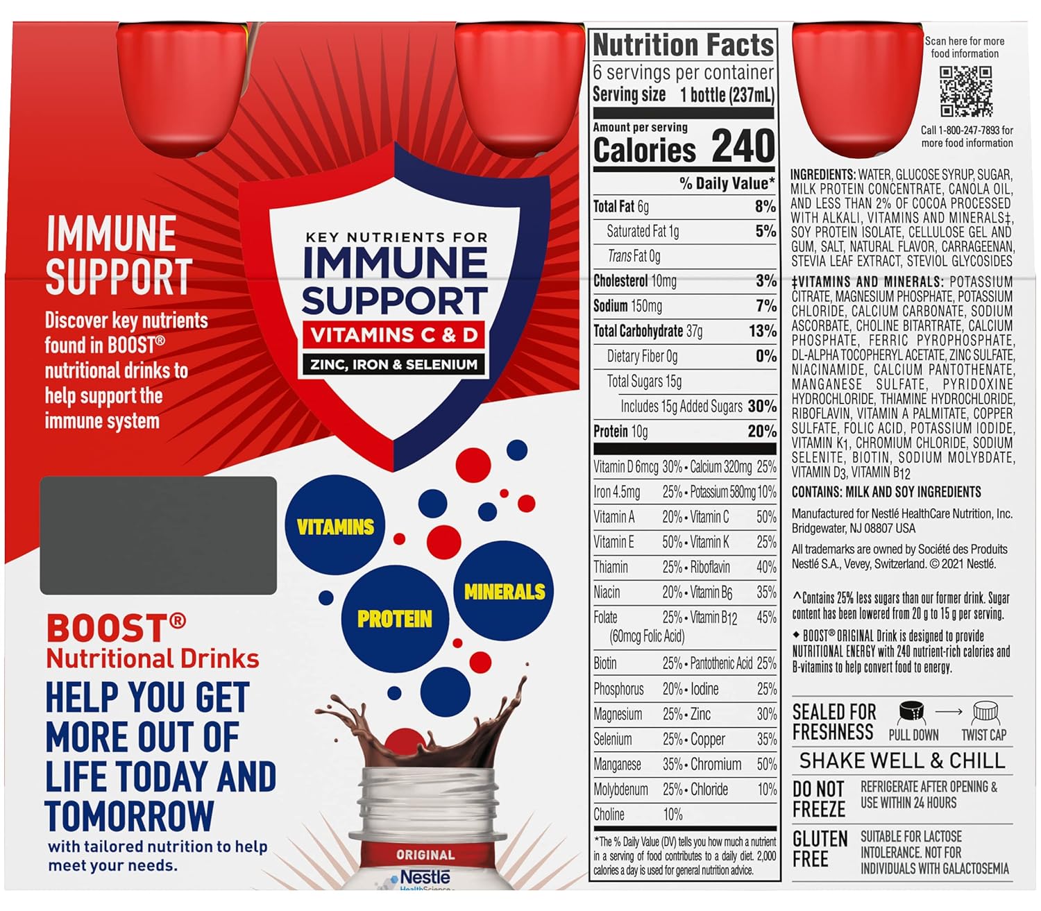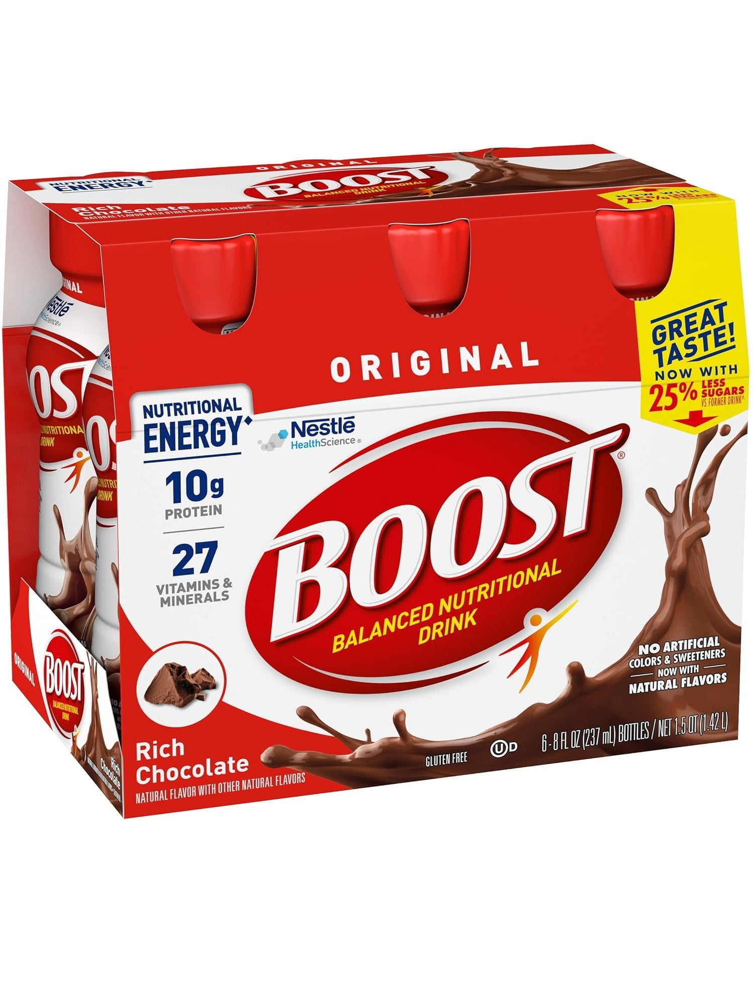 Bebida nutricional original Boost, energía equilibrada (Paquete de 6 unidades) sabor chocolate