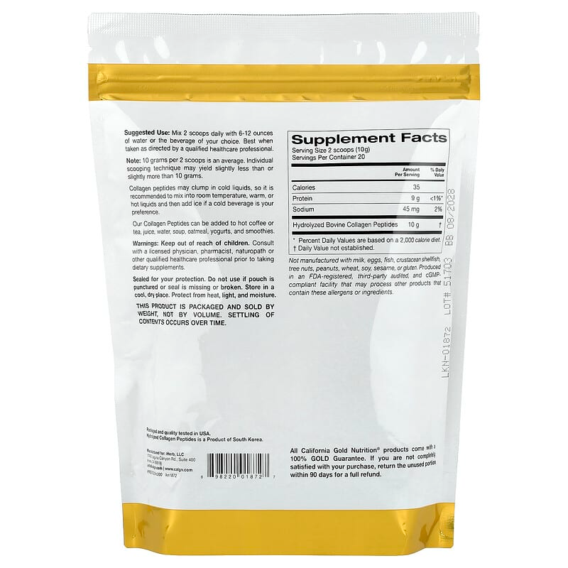 Colageno Hidrolizado, en polvo, California Gold Nutrition, 7 onzas