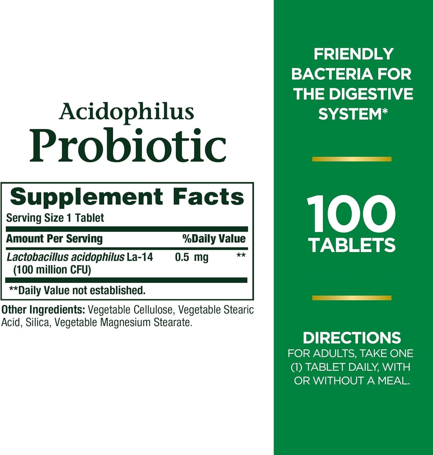 Probiótico acidófilo, Nature's Bounty, 100 tabletas