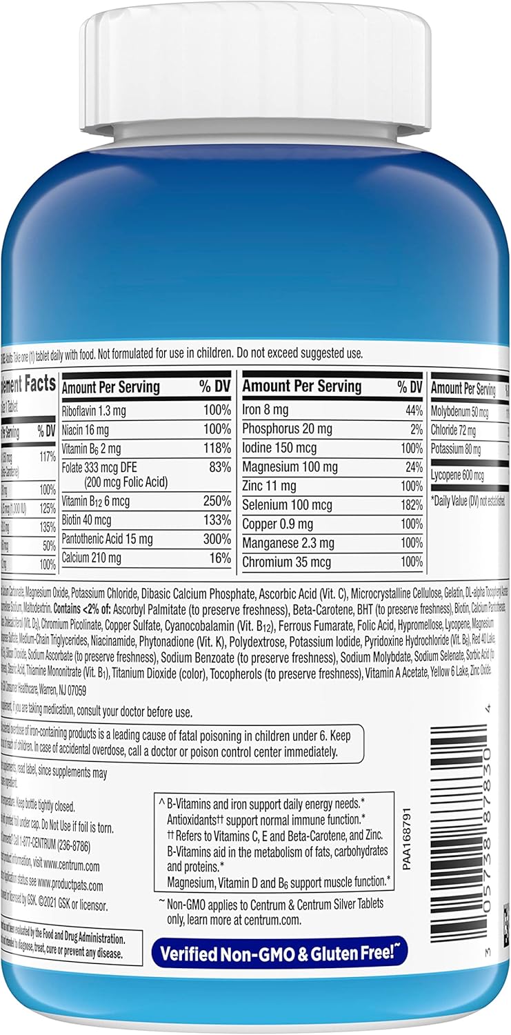 Centrum multivitaminico para hombres: Vitaminas, Minerales. Energía, Metabolismo, Inmunidad, Músculos y Huesos. 120 tabletas