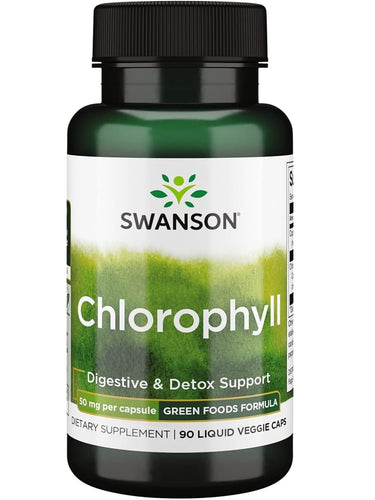 Clorofila: Desintoxica, intestinos, la sangre, elimina olores, pérdida de peso, cicatrización. Swanson. 50 mg. 90 cápsulas.