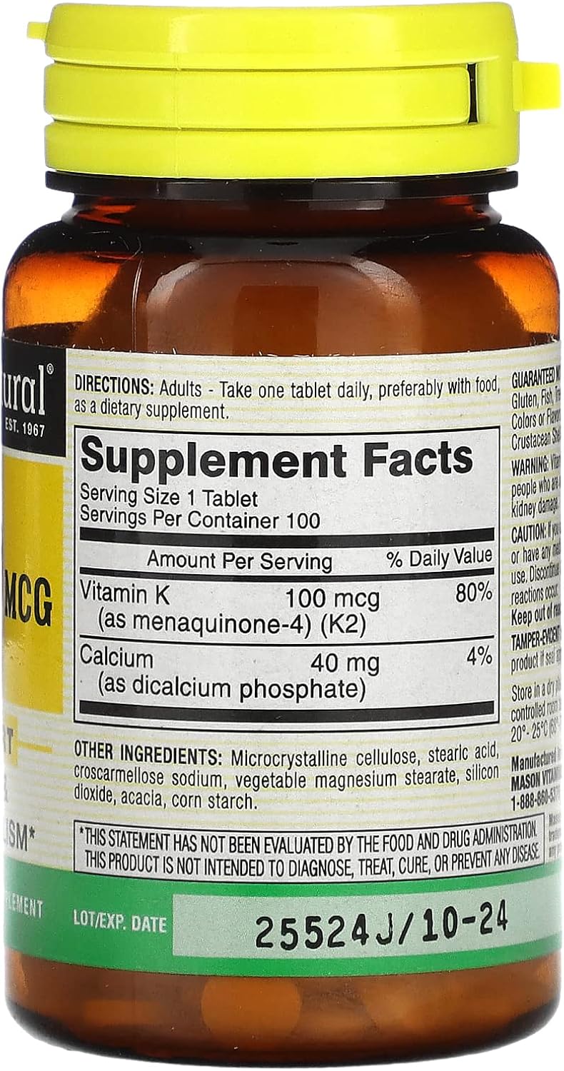 Vitamina K2, 100 mcg, 100 tabletas Mason